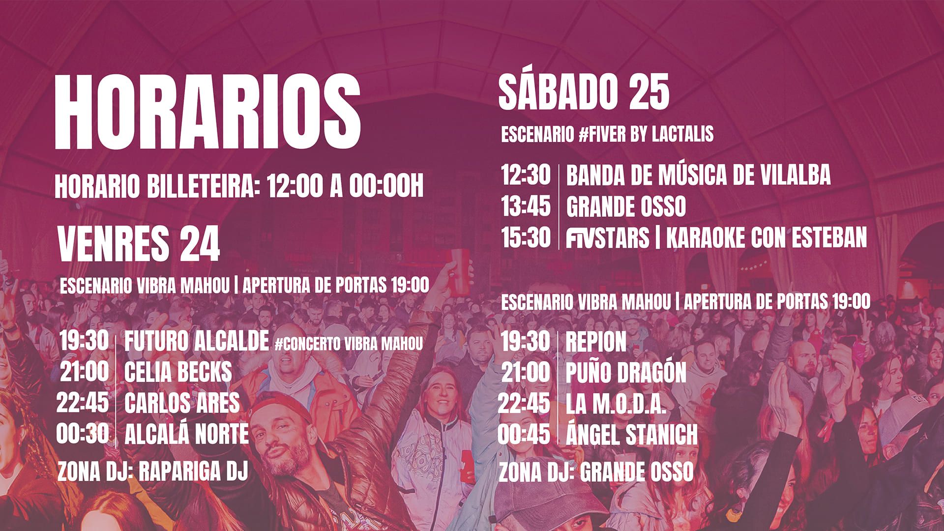 O FIV de Vilalba 2026 presenta o seu cartel por días: Carlos Ares e Alcalá Norte actuarán o venres 24 de abril, mentres que La M.O.D.A e Ángel Stanich encabezarán o sábado 25.