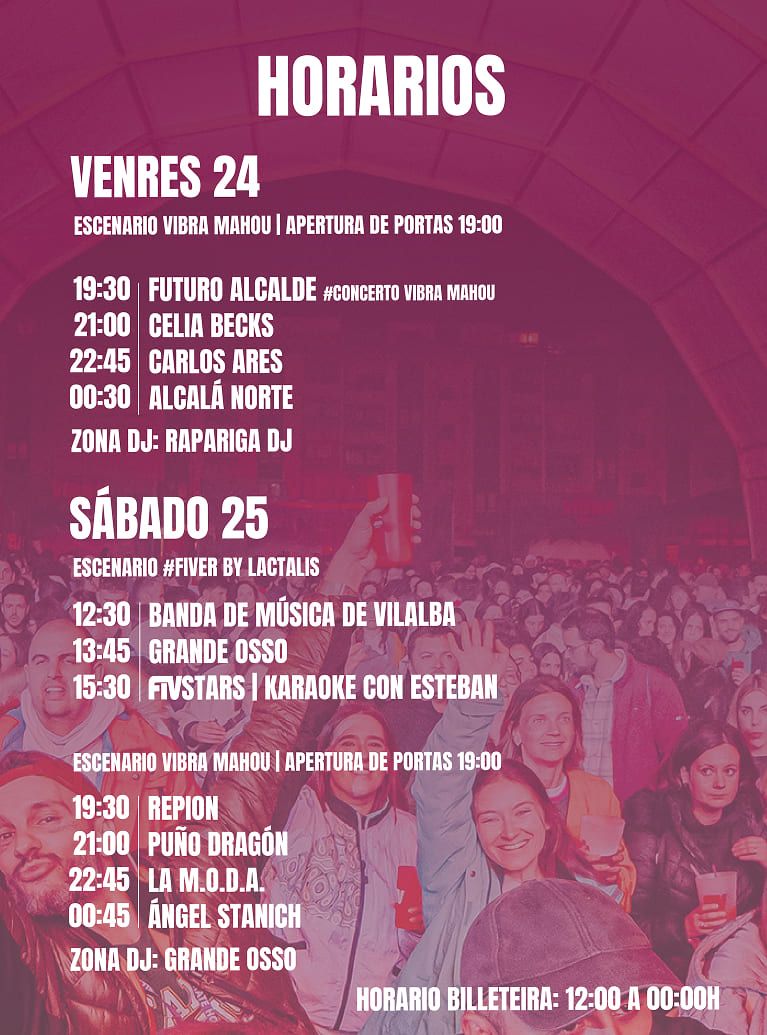 Cartel por días do FIV de Vilalba: Carlos Ares e Alcalá Norte encabezan o venres 24 e la M.O.D.A. Lidera o sábado 25 de abril